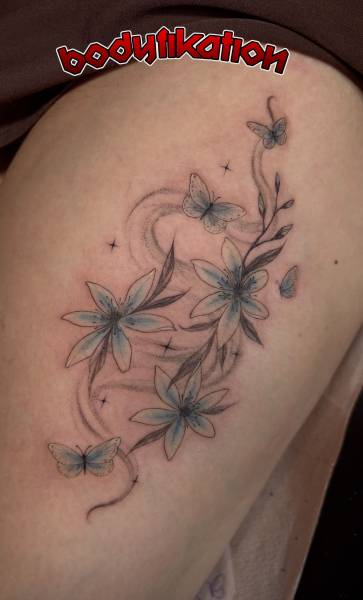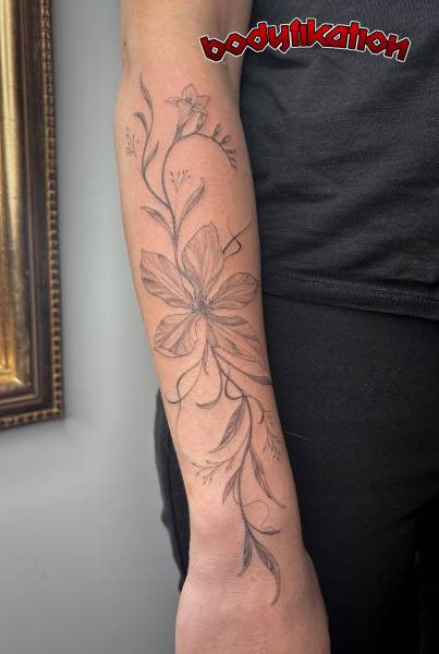 Tatoueuse depuis 5 ans, Elle adore travaille des motifs doux, fins, inspirés de la nature mais pas que.