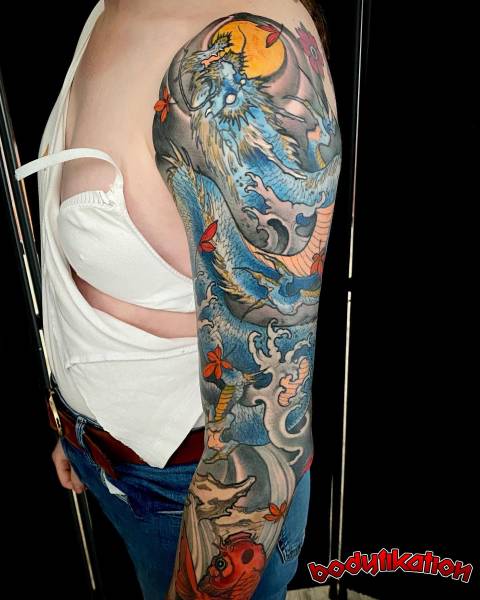 Vous cherchez un artiste tatoueur capable de réaliser un tatouage japonais, à base de dragon japonais, en couleur ou noir et gris, pour femme ou homme, dans la région de bordeaux metropole en gironde?